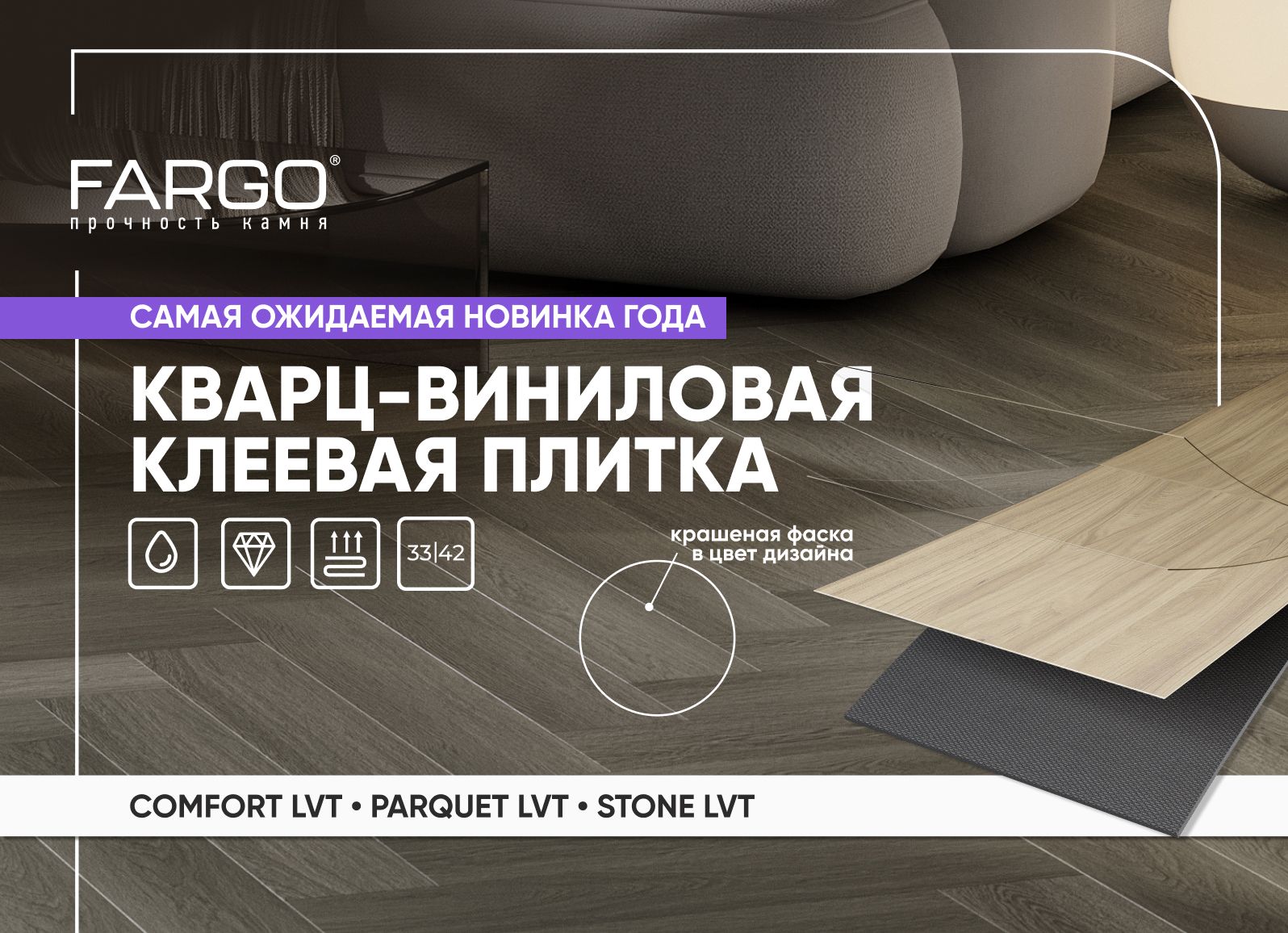 Наша компания — официальный производитель кварцевого ламината Fargo на территории России и стран СНГ, охватывая Москву, крайний север и южные города.